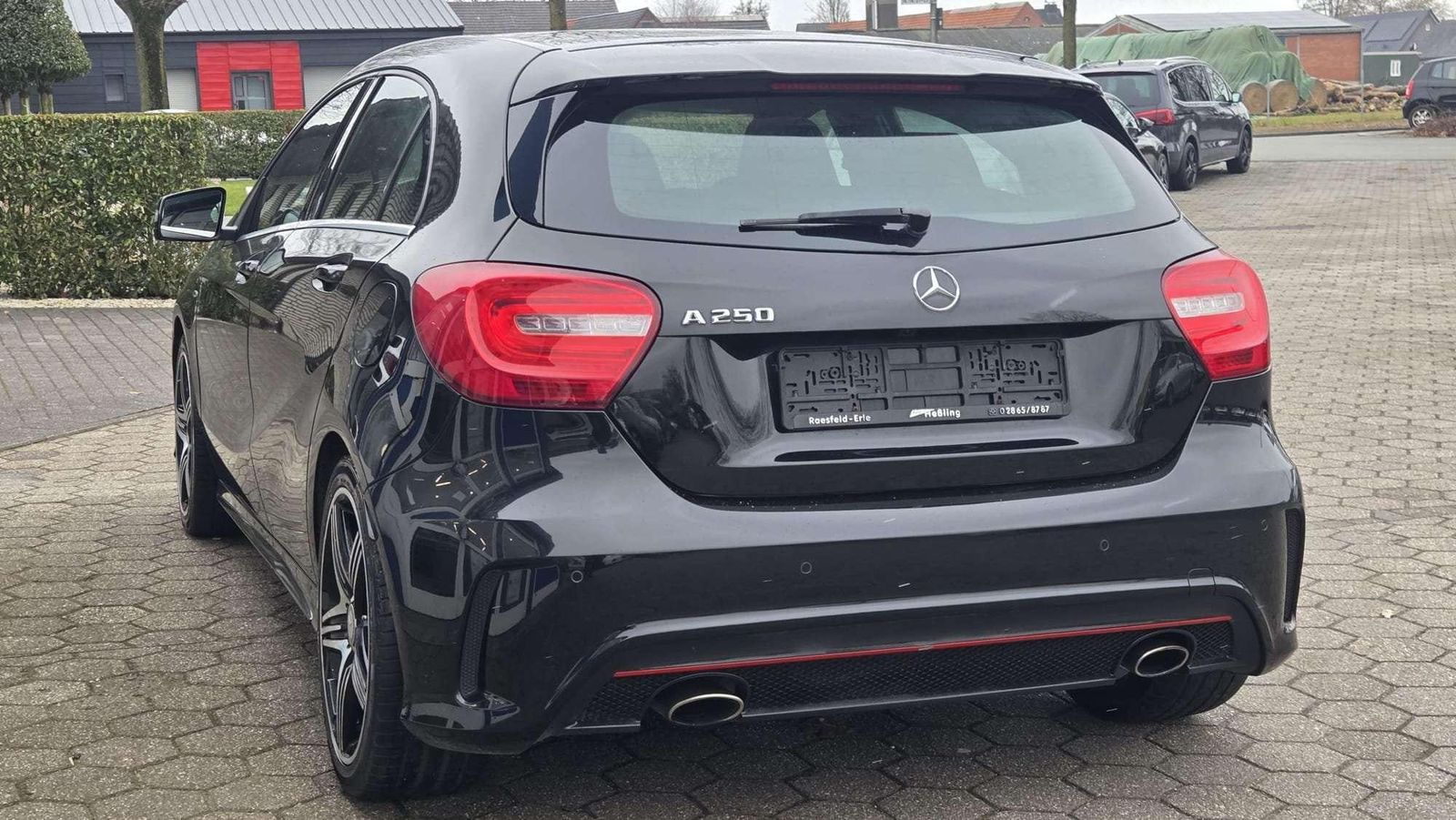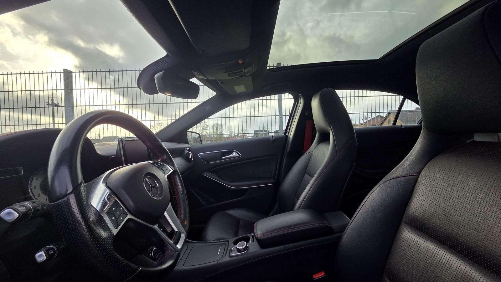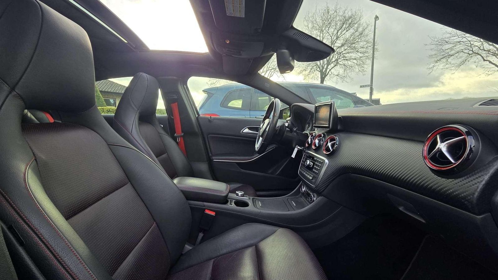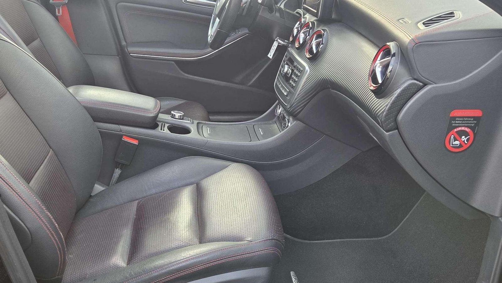 Adaptives Bremslicht | Airbag Fahrer-/Beifahrerseite | Aktive Motorhaube | Anti-Blockier-System (ABS) | Antriebs-Schlupfregelung (ASR) | Armauflage vorn mit Fach | Außenspiegel elektr. verstell- und heizbar, beide | Außenspiegel Wagenfarbe | Außentemperaturanzeige | Blinkleuchte in Außenspiegel integriert | Bremsassistent | Bremssättel Rot lackiert | Design- und Ausstattungslinie AMG Sport (Line) | Einschaltautomatik für Fahrlicht | Elektron. Stabilitäts-Programm (ESP) | Fahrassistenz-System: Attention-Assist (Müdigkeitserkennungs-Sensor) | Fahrassistenz-System: Berganfahrhilfe | Fensterheber elektrisch vorn + hinten | Feststellbremse elektrisch | Frontscheibe Verbundglas | Getriebe 7-Gang - Doppelkupplungsgetriebe DCT | Heckscheibe heizbar (ESG) | Isofix-Aufnahmen für Kindersitz an Rücksitz | Karosserie: 5-türig | Knieairbag Fahrerseite | Kopf-Airbag-System (Windowbag) | Kühlergrill Diamant-Optik | Lenkrad (Leder) | Lenksäule (Lenkrad) mechan. verstellbar | LM-Felgen | Motor 2,0 Ltr. - 155 kW CGI KAT | Parameterlenkung | Reifen-Reparaturset (Tirefit) | Reifendruckwarner | Reiserechner | Rücksitzlehne geteilt / klappbar | Schadstoffarm nach Abgasnorm Euro 6 | Seitenairbag (Sidebag) vorn | Sicherheitsgurte designo | Sitzbelegungserkennung für Airbag Beifahrerseite | Start/Stop-Anlage | Stau-/Ablagefach unter Laderaumboden | Stoßfänger Wagenfarbe | Tagfahrlicht | Türgriffe außen Wagenfarbe | USB-Anschluss / AUX-IN-Anschluss | Wegfahrsperre | Wärmeschutzverglasung |