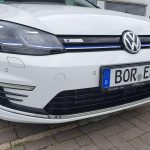 3-Punkt-Sicherheitsgurt hinten mitte | Abbiegelicht | Airbag Beifahrerseite abschaltbar | Airbag Fahrer-/Beifahrerseite | Anti-Blockier-System (ABS) | Antriebs-Schlupfregelung (ASR) | Antriebsart: Frontantrieb | Audio-Navigationssystem Discover Pro (Touchscreen, CD/DVD, MP3, Festplattenspeicher, Bluetooth) | Ausstattung e-Golf | Auto-Hold-Funktion | Außenspiegel asphärisch, links | Außenspiegel elektr. verstell- und heizbar | Außenspiegel elektr. verstellbar, mit Memory | Außenspiegel konvex, rechts | Außenspiegel lackiert | Außenspiegel mit autom. Absenkfunktion, rechts | Blinkleuchte in Außenspiegel integriert | Bremsassistent | Chrom-Paket (1) | Dachspoiler | Doppeltonhorn | Einparkhilfe vorn und hinten | Elektromotor 100 kW | Elektron. Differentialsperre (EDS) | Elektron. Differentialsperre (XDS) | Elektron. Stabilitäts-Programm (ESP) | Fahrassistenz-System: Anhänger-Stabilisierungs-Programm | Fahrassistenz-System: Berganfahr-Assistent | Fahrassistenz-System: Fahrprofilauswahl | Fahrassistenz-System: Müdigkeitserkennungs-Sensor | Fahrassistenz-System: Umfeldbeobachtungssystem (Front assist) mit City-Notbremsfunktion | Fensterheber elektrisch | Frontscheibe heizbar | Funkschlüssel (2) klappbar | Fußmatten Textil | Getriebe für Elektrofahrzeug | Handschuhfach mit Kühlfunktion | Heckleuchten LED | Heckscheibenwischer | Innenausstattung: Dekoreinlagen New Brushed Dark Metal | Innenspiegel abblendbar | Isofix-Aufnahmen für Kindersitz an Rücksitz | Karosserie: 5-türig | Klimaanlage Climatronic 2-Zonen | Knieairbag Fahrerseite | Kopf-Airbag-System vorn und hinten inkl. Seitenairbag vorn | Kopfstützen hinten (3-fach) | Ladekabel mit Schukostecker | Lendenwirbelstütze Sitz vorn links | Lendenwirbelstütze Sitz vorn rechts | Lenkrad (Leder) mit Multifunktion | Lenksäule (Lenkrad) mechan. verstellbar, Höhen-/Längsverstellung | Leseleuchten vorn | LM-Felgen | Mobile Online Dienste VW Connect | Modellpflege | Multifunktionsanzeige Premium (Farbdisplay) | Nebelschlussleuchte | Nichtraucher-Paket | Notrufsystem | Parkbremse elektrisch | Reifen-Reparaturkit | Reifenkontroll-Anzeige | Rücksitzlehne geteilt | Schalt-/Wählhebelgriff Leder | Scheibenwischer mit Intervallschaltung, regulierbar | Scheinwerfer LED | Servolenkung elektro-mechanisch und geschwindigkeitsabhängig | Sicherheitsgurte vorn mit Gurtstraffer, höhenverstellbar | Sitz vorn links höhenverstellbar | Sitzbezug / Polsterung: Stoff | Stabilisator vorn | Stoßfänger Sport-Design, lackiert | Tagfahrlicht LED | Türgriffe außen Wagenfarbe | Warnanlage für Sicherheitsgurte vorn | Wegfahrsperre (elektronisch) | Wärmeschutzverglasung grün getönt | Zentralverriegelung mit Fernbedienung |