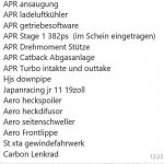 3-Punkt-Sicherheitsgurt hinten mitte | Abbiegelicht | Ablagefach am Dachhimmel | Airbag Beifahrerseite abschaltbar | Airbag Fahrer-/Beifahrerseite | Ambiente-Beleuchtung | Anti-Blockier-System (ABS) | Antriebs-Schlupfregelung (ASR) | Antriebsart: Allradantrieb | Auspuffendrohr (4) sichtbar / verchromt | Ausstattung R | Auto-Hold-Funktion | Außenspiegel asphärisch, links | Außenspiegel elektr. verstell- und heizbar | Außenspiegel konvex, rechts | Außenspiegel mit autom. Absenkfunktion, rechts | Blinkleuchte in Außenspiegel integriert | Bremsassistent | Chrom-Paket 2 | Dachhimmel Stoff, schwarz | Dachspoiler | Diebstahl-Warnanlage mit Innenraumüberwachung | Doppeltonhorn | Durchladeeinrichtung (Mittelarmlehne hinten) | Einparkhilfe vorn und hinten | Einstiegshilfe Easy-Entry | Einstiegsleisten (Edelstahl) vorn, beleuchtet | Elektron. Differentialsperre (EDS) | Elektron. Differentialsperre (XDS) | Elektron. Stabilitäts-Programm (ESP) | Fahrassistenz-System: Anhänger-Stabilisierungs-Programm | Fahrassistenz-System: Müdigkeitserkennung | Fahrassistenz-System: Umfeldbeobachtungssystem (Front assist) mit City-Notbremsfunktion | Fensterheber elektrisch | Frontscheibe Verbundglas getönt | Funkschlüssel (2) klappbar | Fußmatten Textil | Fußraumbeleuchtung vorn LED | Getriebe 7-Gang - Doppelkupplungsgetriebe DSG | Handschuhfach mit Kühlfunktion | Heckleuchten LED, dunkelrot, Blinkleuchten dynamisch | Heckscheibenwischer | Innenausstattung: Dekoreinlagen Carbon Touch | Isofix-Aufnahmen für Kindersitz an Rücksitz | Karosserie: 3-türig | Kennzeichenbeleuchtung LED | Klimaanlage Climatronic 2-Zonen | Knieairbag Fahrerseite | Kopf-Airbag-System vorn und hinten inkl. Seitenairbag vorn | Kopfstützen hinten (3-fach) | Kühlergrill schwarz mit Chromleiste unten | Lendenwirbelstütze Sitz vorn links | Lendenwirbelstütze Sitz vorn rechts | Lenkrad (Leder) mit Multifunktion und Schaltfunktion (R-Line) | Lenksäule (Lenkrad) mechan. verstellbar, Höhen-/Längsverstellung | Leseleuchten vorn und hinten LED | Licht- und Sicht-Paket 1 | Mittelarmlehne vorn | Modellpflege | Motor 2,0 Ltr. - 228 kW 16V T FSI | Multifunktionsanzeige Premium (Farbdisplay) | Nebelschlussleuchte | Nichtraucher-Paket | Parkbremse elektrisch | Pedale Edelstahl | Progressivlenkung | Reifen-Reparaturkit (Tire Mobility Set) | Reifenkontroll-Anzeige | Rücksitzlehne geteilt | Schadstoffarm nach Abgasnorm Euro 6 | Schalt-/Wählhebelgriff Leder | Scheinwerfer LED mit dynamischem Kurvenlicht | Schublade / Ablagefach unter Sitz vorn links | Schublade / Ablagefach unter Sitz vorn rechts | Sicherheitsgurte vorn mit Gurtstraffer, höhenverstellbar | Sitz vorn links höhenverstellbar | Sitz vorn rechts höhenverstellbar | Sitze: Top-Sportsitze vorn | Sonnenblenden mit Spiegel (beleuchtet) | Stabilisator vorn | Start/Stop-Anlage | Steckdose 12V im Koffer-/Laderaum | Stoßfänger R | Tagfahrlicht LED | Türgriffe außen Wagenfarbe | Warnanlage für Sicherheitsgurte vorn | Wegfahrsperre (elektronisch) | Winter-Paket | Zentralverriegelung mit Fernbedienung |